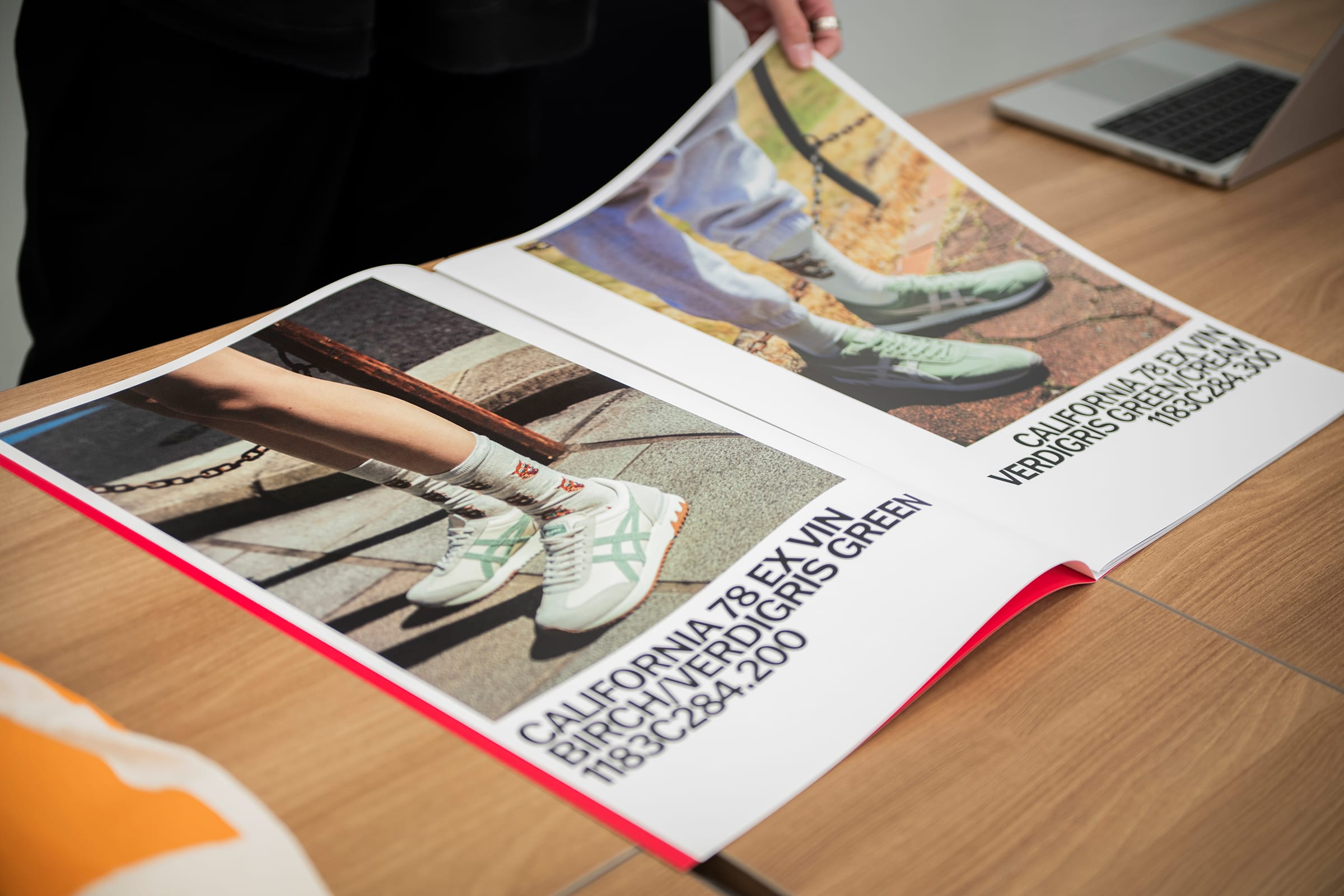 TRAPは代表の翔さんと僕の2人チームなので、毎回クライアントからの要望を受け取り、翔さん主導のもと、リサーチに時間をかけて2人でアイデア出しのラリーをしながら撮影のディレクションに臨んでいます。SS24(春夏2024年)のシーズンルックカタログを手がけた際は、インパクトと商品のディテールを詳細に見せられるように、一般的なものとくらべてかなり大きなB3サイズのカタログを作成しました。