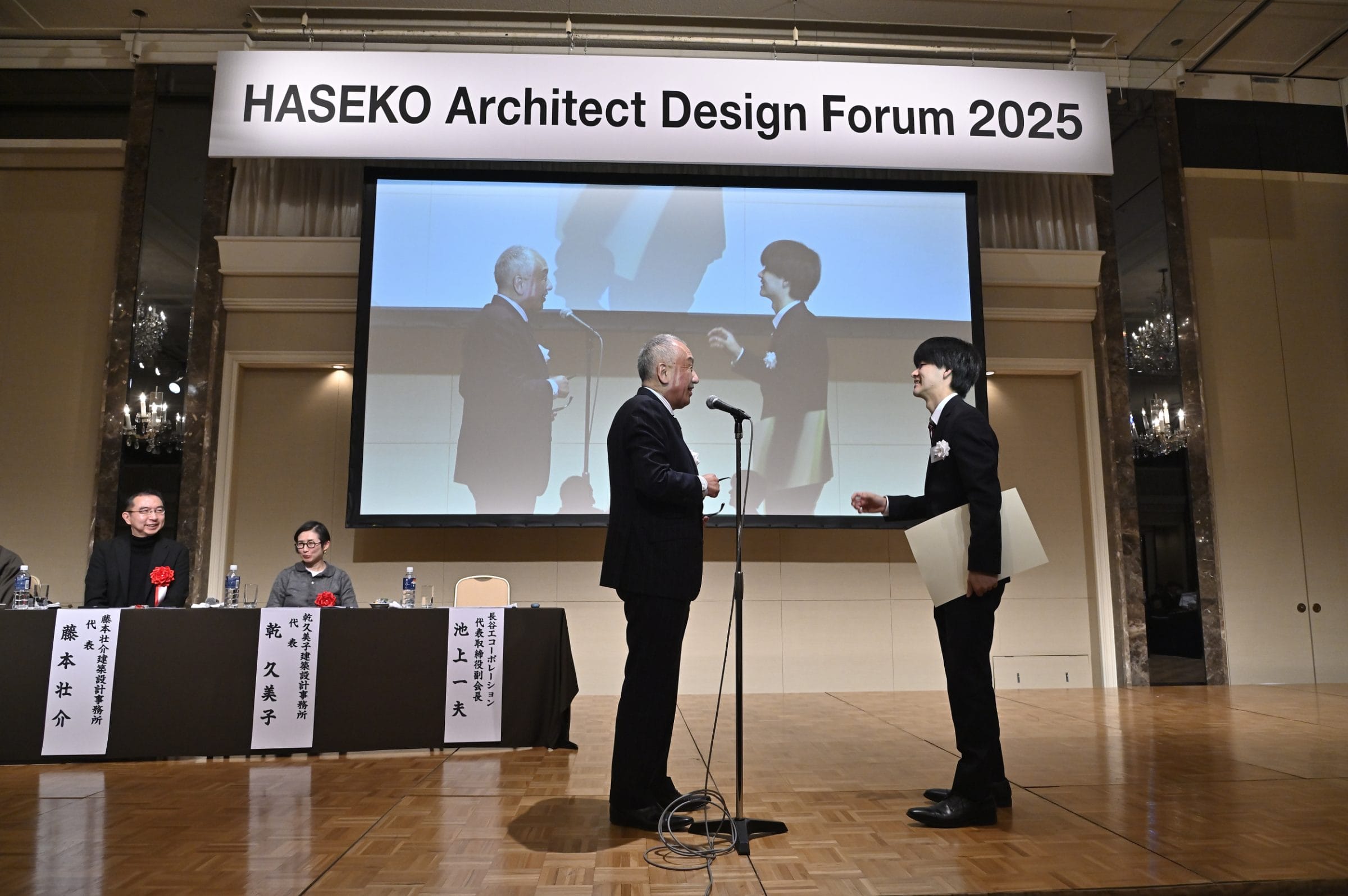 4作品のプレゼンテーション終了後には、公開審査と賞の発表、授賞式が開催された。審査委員の議論の末、来間海人さんの「みんな違ってみんないい」が満場一致で最優秀賞に決定。長谷工コーポレーションの池上副会長より、表彰状と賞金100万円が授与された。